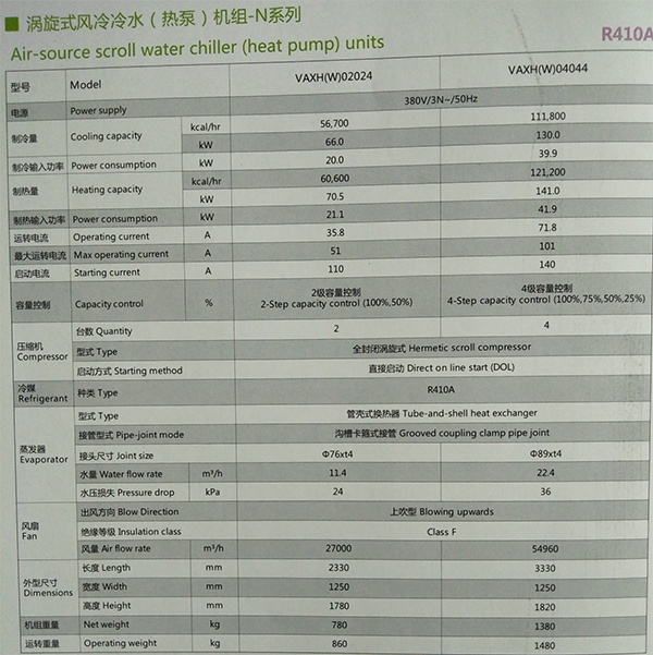 6、熱泵型機組帶有輔助電加熱接口,可實現(xiàn)水溫升溫補償;