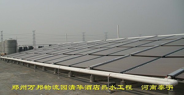 萬(wàn)邦物流園1:該圖為中牟萬(wàn)邦物流心大清華酒店太陽(yáng)能+空氣能熱泵熱水系統(tǒng)施工完畢圖,太陽(yáng)能集熱面積約280m2,本項(xiàng)目采用真空管太陽(yáng)能與美的空氣能熱泵(10P熱泵三臺(tái))相結(jié)合,屬于節(jié)能項(xiàng)目,年節(jié)能率達(dá)百分之90以上。該熱水項(xiàng)目晴好天氣時(shí)每天可產(chǎn)20T左右的熱水,完全可以滿足甲方使用要求,達(dá)到大節(jié)能效果。