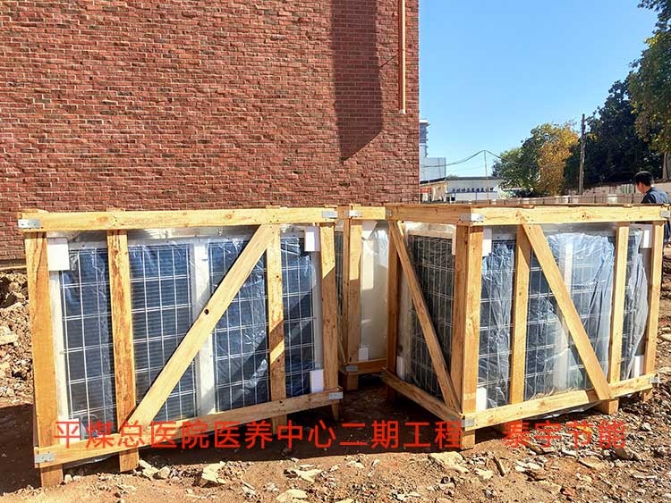 平煤總醫(yī)院醫(yī)養(yǎng)中心二期太陽(yáng)能熱泵熱水項(xiàng)目共有兩棟樓康復(fù)樓及醫(yī)養(yǎng)樓??祻?fù)樓病房100多間,醫(yī)養(yǎng)樓病房200多間,兩棟樓日用熱水量約為60T,采用空氣能熱泵機(jī)組7臺(tái),太陽(yáng)能集熱面積約為4000平方左右,日產(chǎn)熱水量約為60T/日。