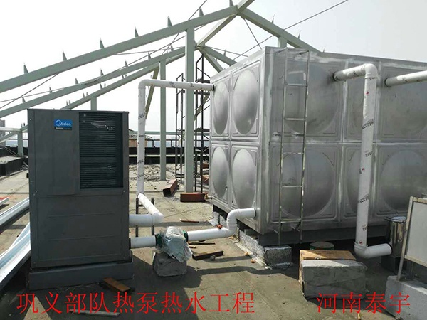 鞏義部隊:該圖為鞏義8680部隊太陽能熱水項目,該項目主要提供集中洗浴熱水,采用美的空氣能熱泵機(jī)組,每個系統(tǒng)供熱水量日均4T,共計六個系統(tǒng),節(jié)能效果顯著!