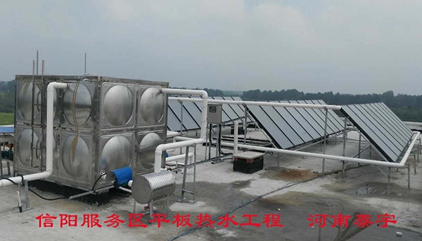 信陽(yáng)高速服務(wù)區(qū):信陽(yáng)高速服務(wù)區(qū)太陽(yáng)能熱水工程,采用平板太陽(yáng)能與電輔助加熱相結(jié)合,日產(chǎn)熱水量約為10T。
