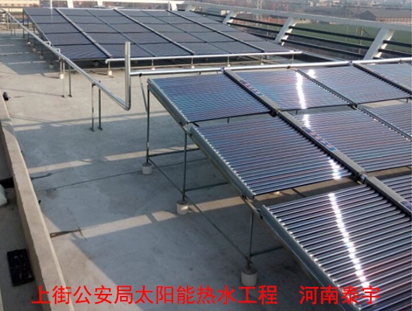 上街公安局太陽能熱水工程:該圖為上街公安局太陽能熱水工程,該項(xiàng)目主要提供集中洗浴熱水,采用力諾太陽能熱集熱器與原有鍋爐相結(jié)合,主樓與副樓兩個(gè)系統(tǒng),熱水量日供20T左右,節(jié)能效果顯著!