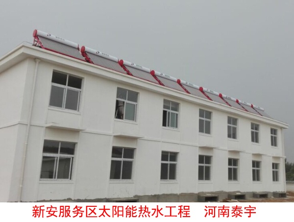新安服務(wù)區(qū)太陽(yáng)能熱水工程:該圖為新安服務(wù)區(qū)太陽(yáng)能熱水工程,該項(xiàng)目主要采用美的真空管集熱器與電輔助加熱相結(jié)合,單個(gè)系統(tǒng)日供熱水量約為5T左右,節(jié)能效果顯著!