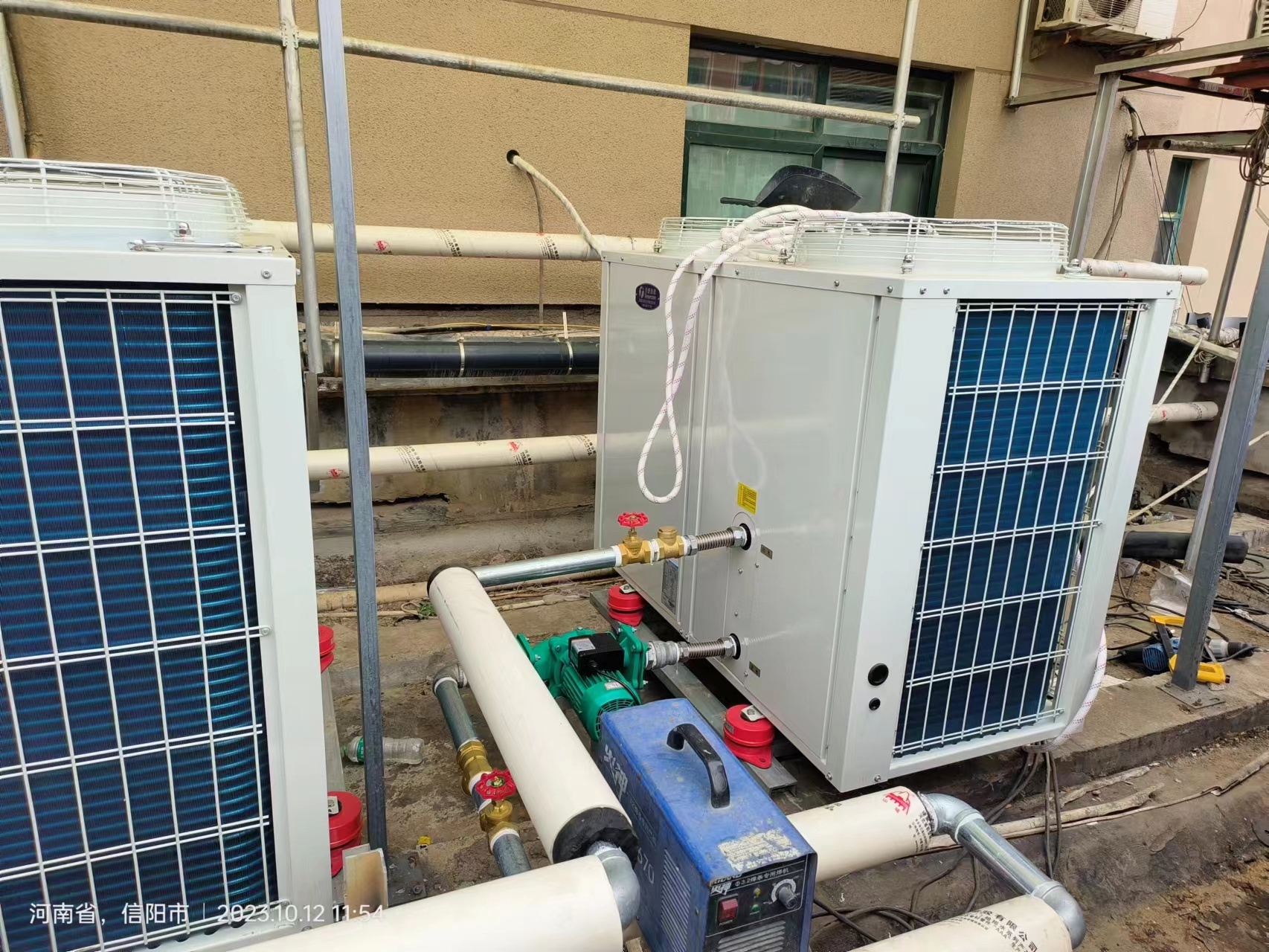 信陽羅山賓館標間共計110間,日用熱水量約為15T,空氣能熱水項目采用10P空氣能熱泵兩臺,保溫水箱16T,年節(jié)可以達到90%以上。